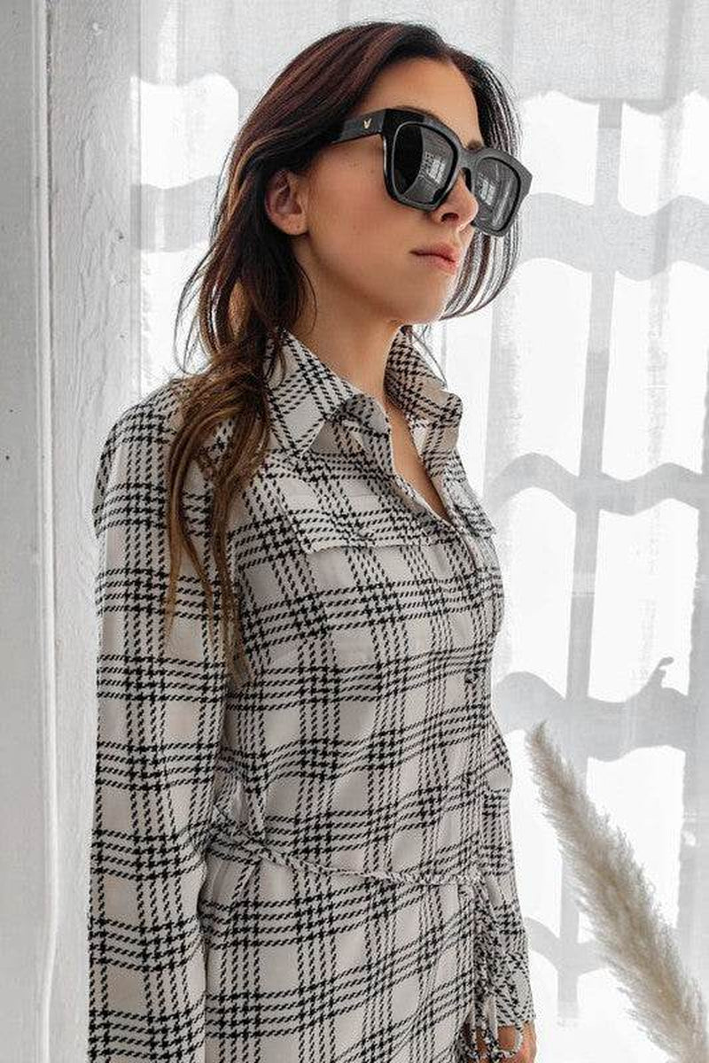 A dress that feels like home: crafted from 100% breathable cotton in a classic rodeo plaid, this button-front midi honors slow fashion with every stitch. The defined V-neck, long sleeves, and self-tie waist create gentle structure, while hidden front pockets add quiet practicality. Designed to transition seamlessly from morning markets to evening gatherings, it’s modest yet modern, rustic yet refined. Wear it belted for shape or loose for ease—either way, it carries the calm confidence of natural fabric and intentional design.
